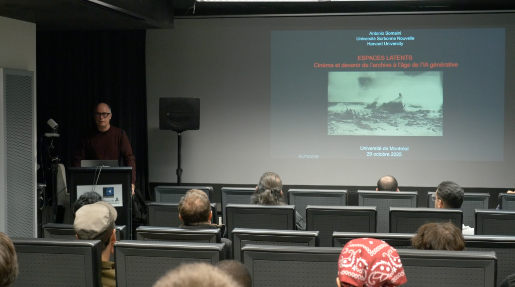 On October 29, 2025, the cinEXmedia partnership welcomed Antonio Somaini—Professor of Film Theory, Media, and Visual Culture at Université Sorbonne Nouvelle and Senior Member of the Institut universitaire de France—to the Université de Montréal as part of the Distinguished Lectures of the Canada Research Chair in Film and Media Studies.